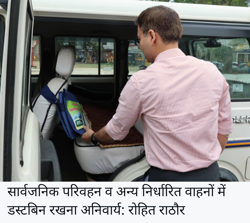 प्रदेश सरकार द्वारा सार्वजनिक परिवहन वाहनों मं अनिवार्य रूप से डस्टबिन रखने की अधिसूचना जारी होने के उपरांत मंडी जिला में परिवहन विभाग के तत्वाधान में जागरूकता अभियान शुरू किया गया है। इसी क्रम में गुरुवार को अतिरिक्त उपायुक्त रोहित राठौर ने मंडी के पड्डल मैदान में विभिन्न विभागों के साथ अटैच गाडि़यों का निरीक्षण किया। इन सभी गाडि़यों में सरकार द्वारा निर्धारित मापदंडो के अनुसार डस्टबिन पाए गए।उन्होंने बताया कि राज्य सरकार द्वारा प्रदूषण को रोकने तथा पर्यावरण संरक्षण के दृष्टिगत सभी टैक्सियों, सार्वजनिक परिवहन सेवाओं, निजी परिवहन सेवाओं, ट्रकों तथा टैपो ट्रैवलर इत्यादि में डस्टबिन रखना अनिवार्य किया गया है। उन्होंने सभी सार्वजनिक परिवहन, टैक्सी तथा ट्रक ऑपरेटर यूनियनों के पदाधिकारियों को इस बारे सभी को जागरूक करने की आवश्यकता पर बल दिया ताकि हिमाचल को प्रदूषण मुक्त किया जा सके।उन्होंने बताया कि इन आदेशों की अवहेलना करने वालों के खिलाफ कानूनी कार्यवाही अमल में लाई जा सकती है तथा उन्हें 1500 रुपये से लेकर 10 हजार रुपये तक का जुर्माना लगाए जाने का प्रावधान है।इस अवसर पर क्षेत्रीय परिवहन अधिकारी नवीन कुमार, जिला रैडक्रास सोसायटी के सचिव ओपी भाटिया भी उपस्थित थे।