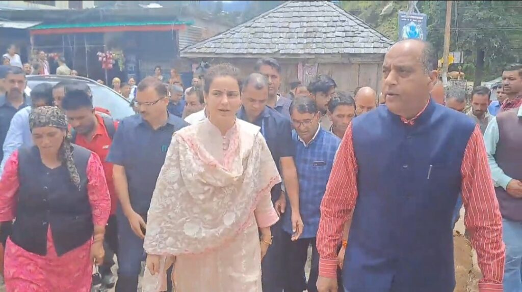 मंडी से भाजपा सांसद एवं अभिनेत्री कंगना रनौत ने आज सराज विधानसभा क्षेत्रों के आपदा प्रभावित इलाकों का दौरा किया। इस दौरान पूर्व सीएम एवं नेता प्रतिपक्ष जयराम ठाकुर भी उनके साथ मौजूद रहे।