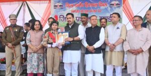 मंडी- लोक निर्माण एवं शहरी विकास मंत्री विक्रमादित्य सिंह ने आज यहां सेरी मंच पर आयोजित जिला स्तरीय हिमाचल दिवस समारोह की अध्यक्षता की। उन्होंने राष्ट्र ध्वज फहराकर मार्चपास्ट की सलामी ली। उन्होंने इंदिरा मार्केट परिसर स्थित शहीद स्मारक एवं सेरी में राष्ट्रपिता महात्मा गांधी की प्रतिमा पर पुष्पांजलि भी अर्पित की। इस अवसर पर पुलिस, गृह रक्षक वाहिनी, एनसीसी, एनएसएस व स्काऊट एंड गाइड्स की टुकड़ियों ने भव्य परेड निकाली। वहीं विभिन्न शैक्षणिक संस्थानों के बच्चों ने रंगारंग कार्य प्रस्तुत किए।