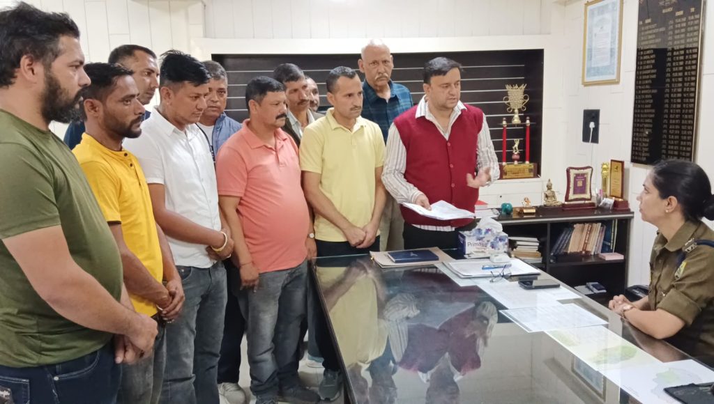 मंडी: देव भूमि टैक्सी ऑपरेटर यूनियन मंडी ने वीरवार को कांग्रेस के प्रदेश सचिव संजीव गुलेरिया की अध्यक्षता में एसपी मंडी साक्षी वर्मा को ज्ञापन सौंपा और ज्ञापन के माध्यम से देव भूमि टैक्सी यूनियन ने एसपी मंडी साक्षी वर्मा से मांग की है कि बाहरी राज्य की टैक्सी नंबर गाड़ियां जोकि जिला मंडी में स्थाई रूप से चलाई जा रही हैं उन पर रोक लगाई जाए।देव भूमि टैक्सी ऑपरेटर यूनियन मंडी के सचिव जीत सिंह ने बताया कि जिला मंडी में पंजाब का व्यक्ति किराए के कमरे में रह कर ट्रैवल एजेंसी चला रहा है जिसमें 10 से 15 टैक्सियां पंजाब नंबर की गाड़ियां चलाई जा रही है और साथ में कुछ बाहरी राज्यों की निजी गाड़ियां भी चलाई जा रही हैं और इन गाड़ियों में बस किराए पर मंडी से चंडीगढ़ सवारियां ले जाई जा रही है जिससे मंडी टैक्सी ऑपरेटर को काफी कठनाइयों का सामना करना पड़ रहा है।उन्होंने बताया कि यह व्यक्ति पिछले एक साल से मंडी में ट्रैवल एजेंसी चला रहा है और मंडी यूनियन की गाड़ियों को इसकी वजह से रोजगार के लाले पड़ गए हैं।उन्होंने बताया कि देव भूमि टैक्सी यूनियन एसपी मंडी साक्षी वर्मा से मांग करती है कि एक्ट के अनुसार उक्त व्यक्ति पर कार्यवाही की जाए ताकि स्थानीय टैक्सी ऑपरेटरो का भी रोजगार चल सके।वहीं एसपी मंडी साक्षी वर्मा ने कहा कि देव भूमि टैक्सी ऑपरेटर यूनियन मंडी ने मामला उनके ध्यान में लाया है जिसमें बताया गया है कि बाहरी राज्य के व्यक्ति के द्वारा मंडी में ट्रैवल एजेंसी चला कर कुछ गाड़ियां बिना परमिट या बिना रूल के चलाई जा रही है।उन्होंने कहा कि इन गाड़ियों की पहचान कर एक्ट और रुल के तहत कार्यवाही अम्ल में लाई जाएगी।