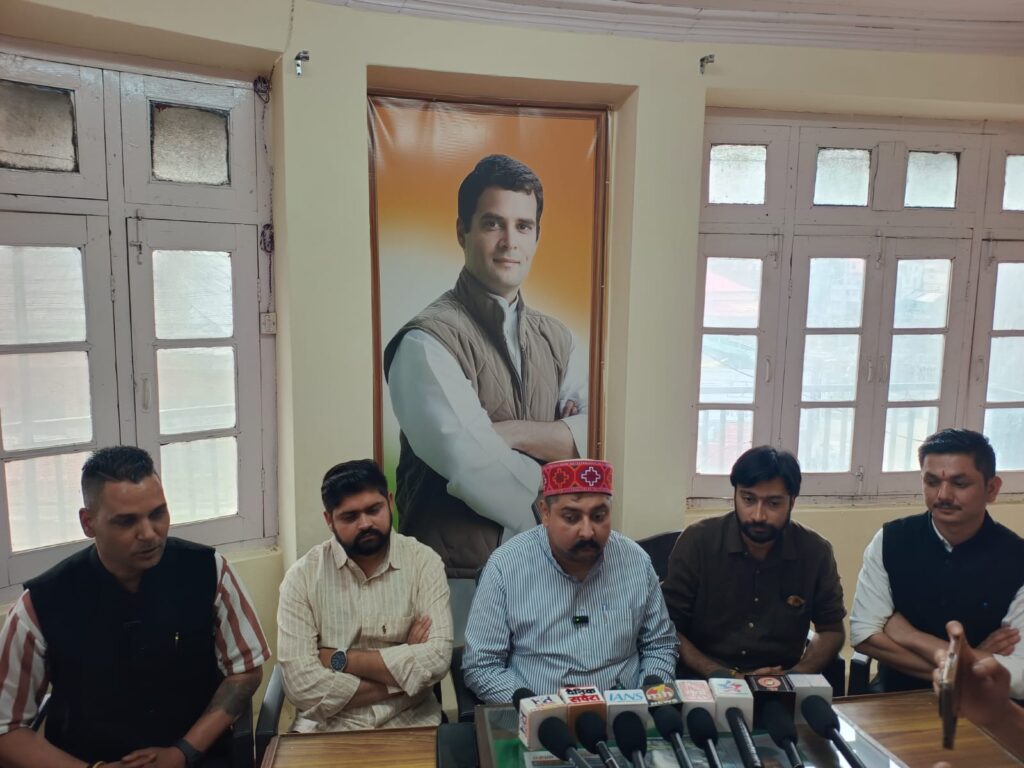 मंडी-शुक्रवार को जिला मण्डी कांग्रेस कार्यालय में युवा कांग्रेस की बैठक का आयोजन किया गया। मण्डी संसदीय क्षेत्र के प्रभारी व युकां प्रदेश उपाध्यक्ष अखिल अग्निहोत्री ने बैठक ली। जिसमें प्रदेश उपाध्यक्ष तरूण ठाकुर, प्रदेश प्रवक्ता राजेन्द्र ठाकुर, जिला युवा कांग्रेस अध्यक्ष निखिल ठाकुर और 10 विधानसभा के सभी अध्यक्ष, युवा पदाधिकारी व कार्यकर्ता मौजूद रहे। पत्रकार वार्ता को सम्बोधित करते हुए प्रदेश प्रवक्ता राजेन्द्र ठाकुर ने कहा कि आज महंगाई ने तो पूरे देश में हर वर्ग के लोगों की कमर तोड़ कर रख दी है। अभी हाल ही में गैस सिलेंडर के दाम फिर से 50 रुपये बढ़ाए गए। थोड़ा सा पीछे मुड़कर देखें तो पिछले 10 सालों में लोगों को लगातार बेवकूफ बनाया गया और महंगाई में बढ़ोतरी हुई। गलत GST लगाया गया और ऐसी कोई वस्तु नहीं छोड़ी जिस पर GST न लगाया गया हो। बच्चों की कापी, पेन, पेनसिल, रबड़ से लेकर खाने की प्रत्येक सामग्री पर टैक्स लगाया गया। अपने उद्योगपति मित्रों का लाखों करोड़ का कर्ज माफ किया और आम जनता की जेब खाली की। जिस देश में अमृत काल ऐसा चल रहा हो कि 80 करोड़ जनता को 5 किलो राशन देना पड़ रहा हो, आप स्वयं अंदाजा लगा सकते हैं कि विश्वगुरु बनने के कितने नजदीक हैं। आज अमेरिका हमारे देश पर 26% टैरिफ लगा रहा है। लेकिन उस पर पूरी केन्द्र सरकार खामोश है। भुखमरी में आज हम पड़ोसी देशों से भी निचले स्तर पर जा पहुंचे हैं। लेकिन फिर भी इन मुद्दों पर चर्चा नहीं हो रही। रूपया आज 1 डालर के मुकाबले 87 पर पहुँच गया है। आज देश पर 216 लाख करोड़ का कर्ज है जो पिछले 70 साल में 55 हज़ार करोड़ था। मात्र 10 साल में इतना डंका बजा कि कर्ज 216 लाख करोड़ पहुँच गया। बड़े दुःख की बात है कि आज जनता को जाति और धर्म जैसे मुद्दों पर लड़ाया जा रहा और देश में लगातार जनता की काटने का काम किया जा रहा।प्रभारी मंडी संसदीय क्षेत्र व प्रदेश उपाध्यक्ष अखिल अग्निहोत्री ने कहा कि हाल ही में मण्डी आई लोकसभा सांसद कंगना रणौत द्वारा नेता प्रतिपक्ष लोकसभा राहुल गाँधी